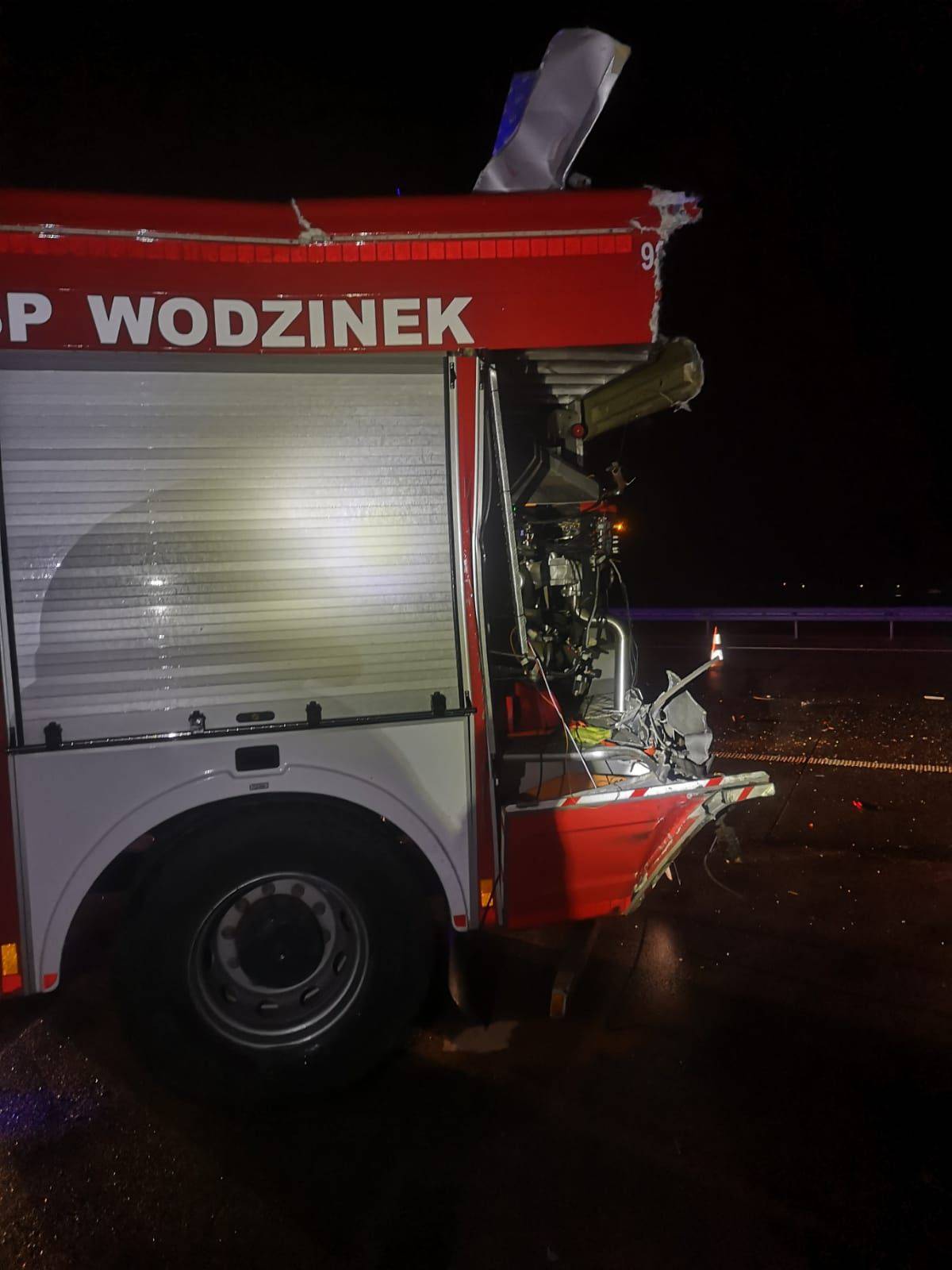 Do zdarzenia doszło około 1.30 w nocy na 337,6 kilometrze autostrady A1 w kierunku Katowic, na wysokości zjazdu, w który skręcić chciał zastęp. Jak przekazano, było to około dwóch kilometrów od miejsca, gdzie strażacy wcześniej prowadzili działania przy innej kolizji.