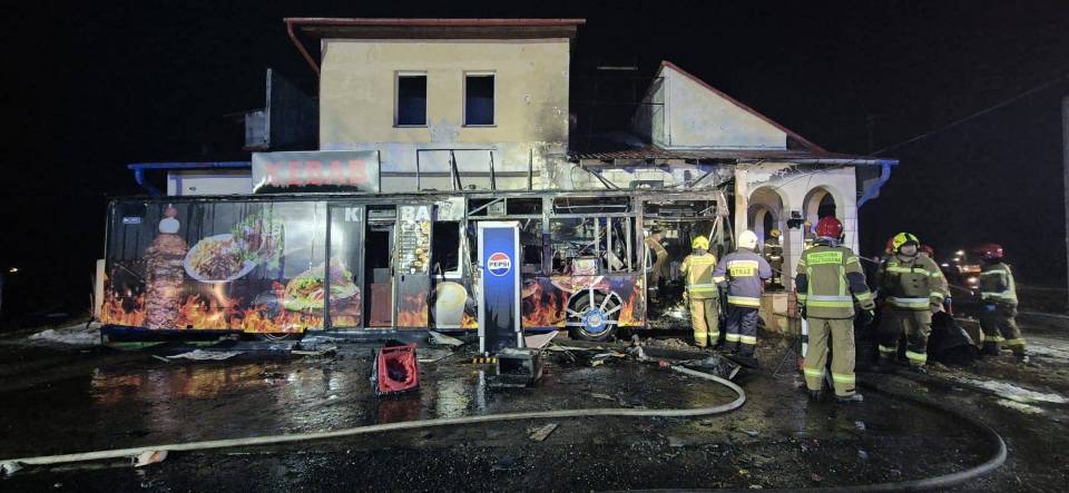 Wybuch rozerwał lokal, pożar dopełnił zniszczenia. Kebab w Korytnicy spłonął [Foto]