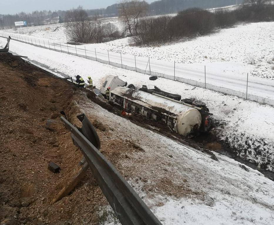 Do zdarzenia doszło w poniedziałek, 6 lutego tuż przed godziną 7.00, na 221 kilometrze trasy S8, na wysokości miejscowości Rydzyny w powiecie pabianickim. Jak wstępnie przekazuj strażacy, kierowca cysternyjadąc w stronę Wrocławia zderzył się z ciężarówką stojącą na poboczu. Po uderzeniu stracił kontrolę na kierowanym pojazdem, potężny pojazd przebił bariery ochronne i finalnie stoczył się z wysokiego nasypu.