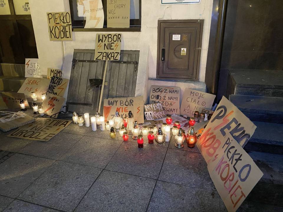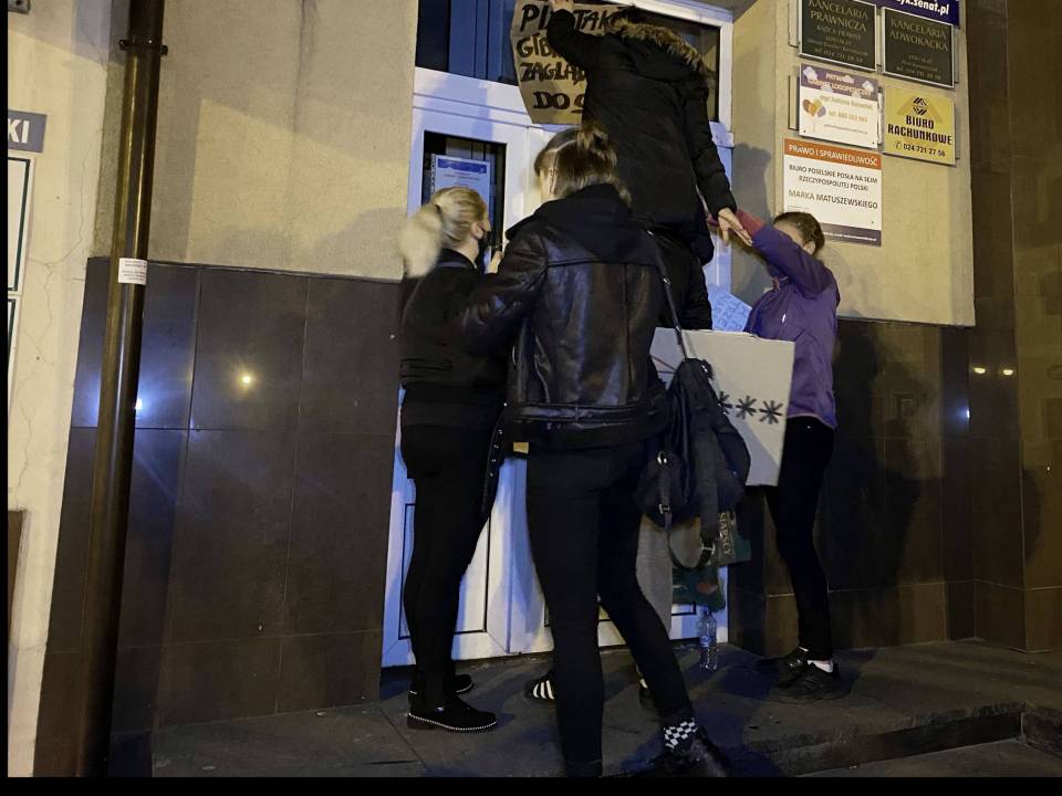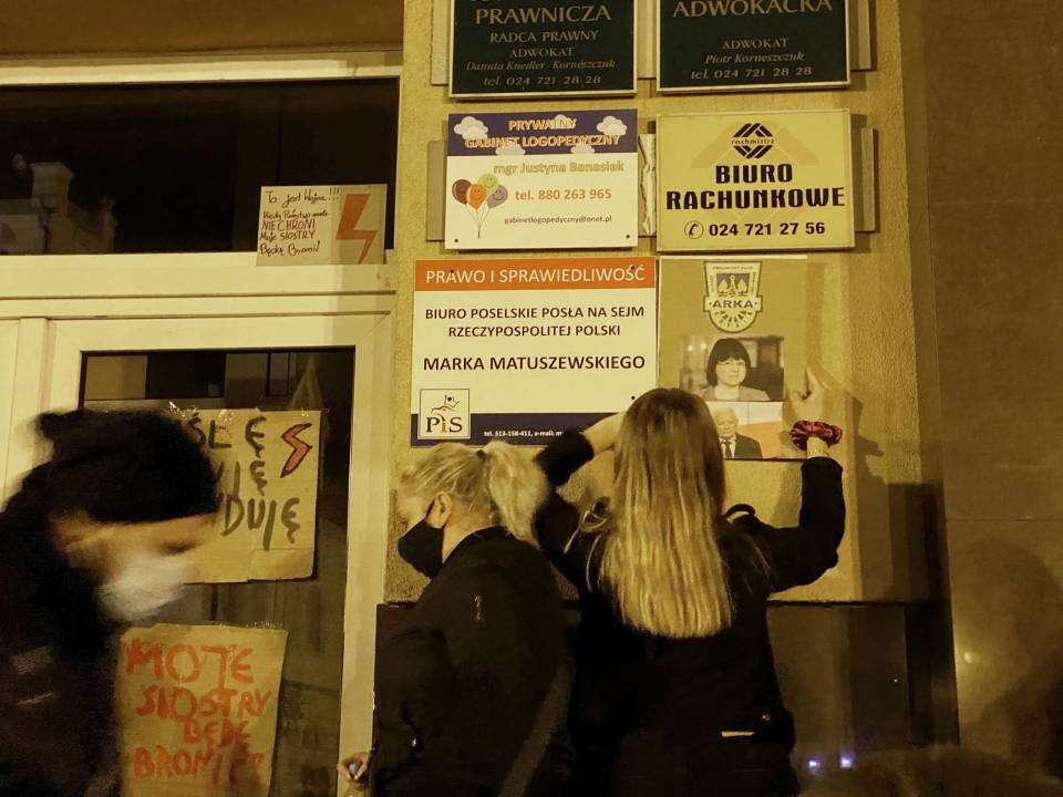 Na koniec, uczestnicy złożyli znicze oraz zakleili transparentami wejście do biura poselskiego Posła na Sejm RP - Marka Matuszewskiego.