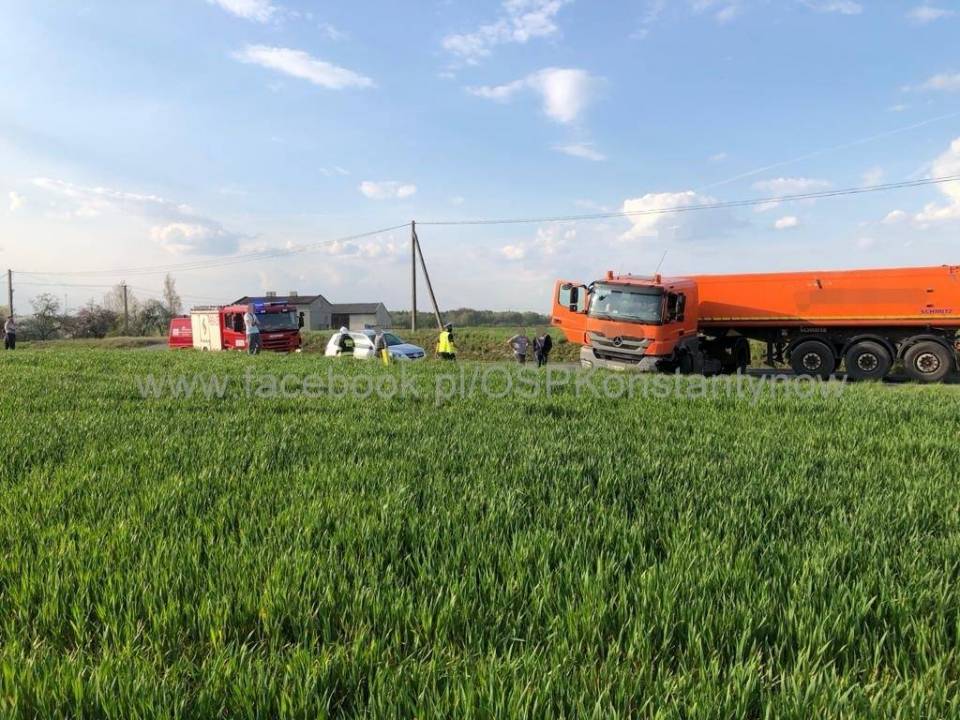 Czołowo się tam dwa pojazdy - osobowy i ciężarowy. Osobówka wypadła z drogi, a ranny kierowca został uwięziony w pojeździe.